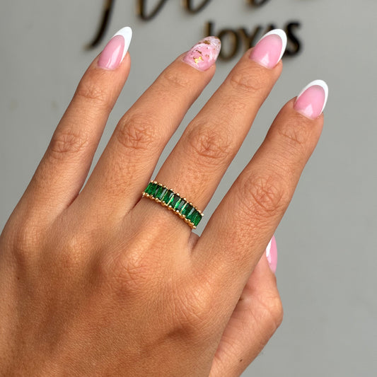 ANILLO BAGUETTE PIEDRAS VERDES TALLA 7 ORO AMARILLO 18K - 2,34GR *PP*