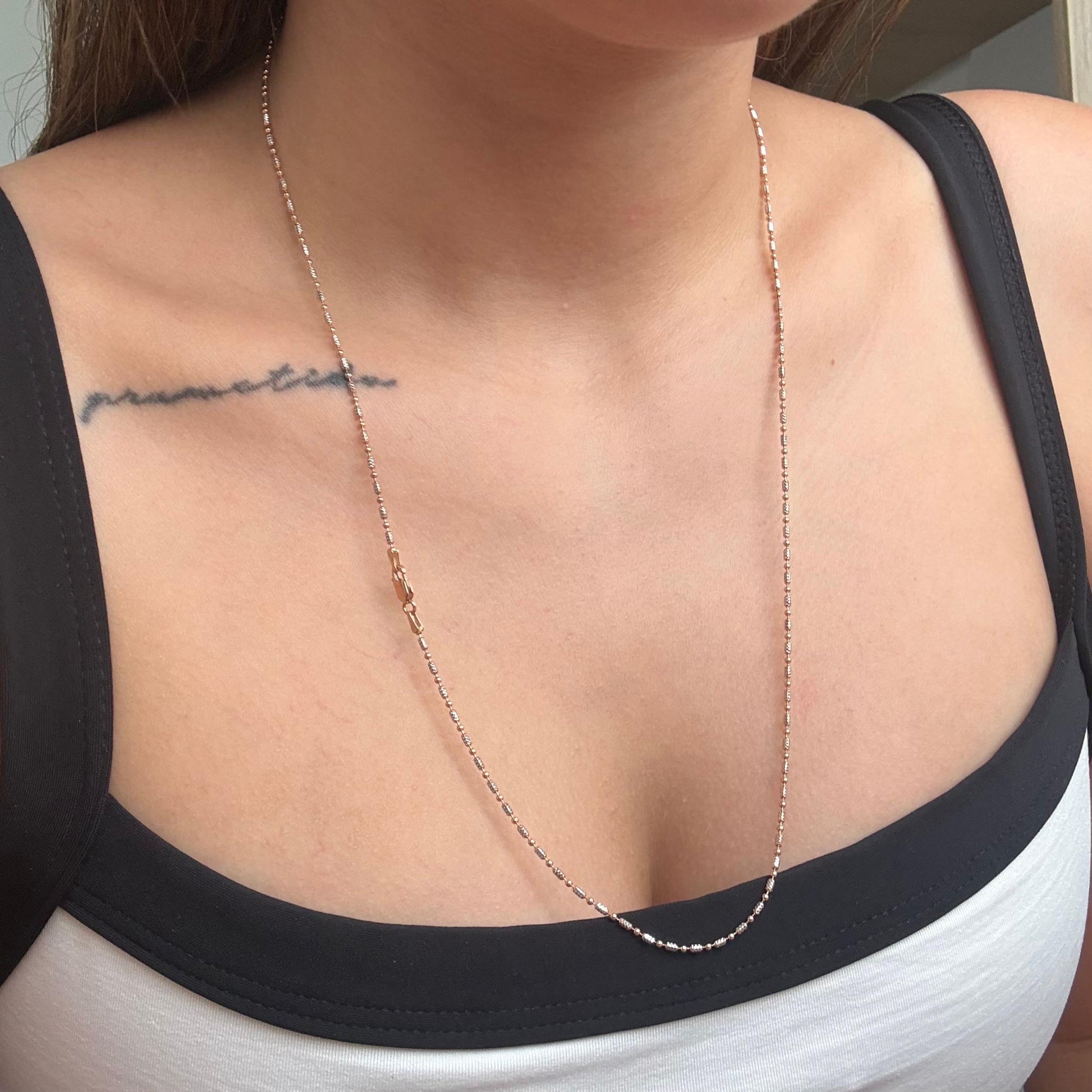 CADENA CANUTILLO MILITAR DIAMANTADA 1MM ORO ROSA Y BLANCO ITALY 18K 60CM- 5,54GR