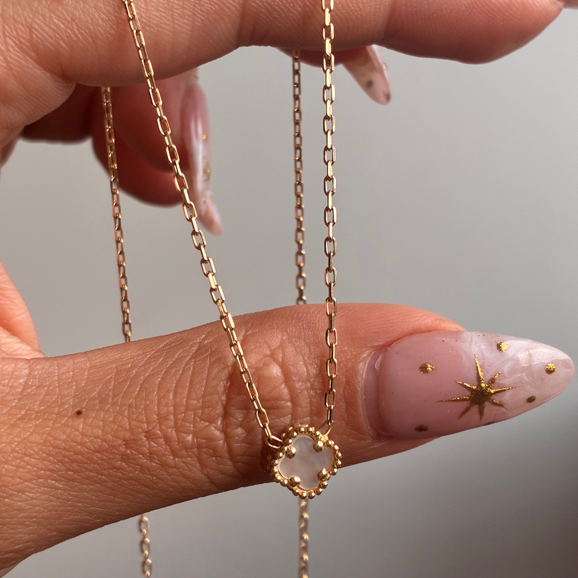 CADENA MINI CAJON + DIJE TREBOL BLANCO ORO AMARILLO ITALY 18K 45CM - 3,22GR
