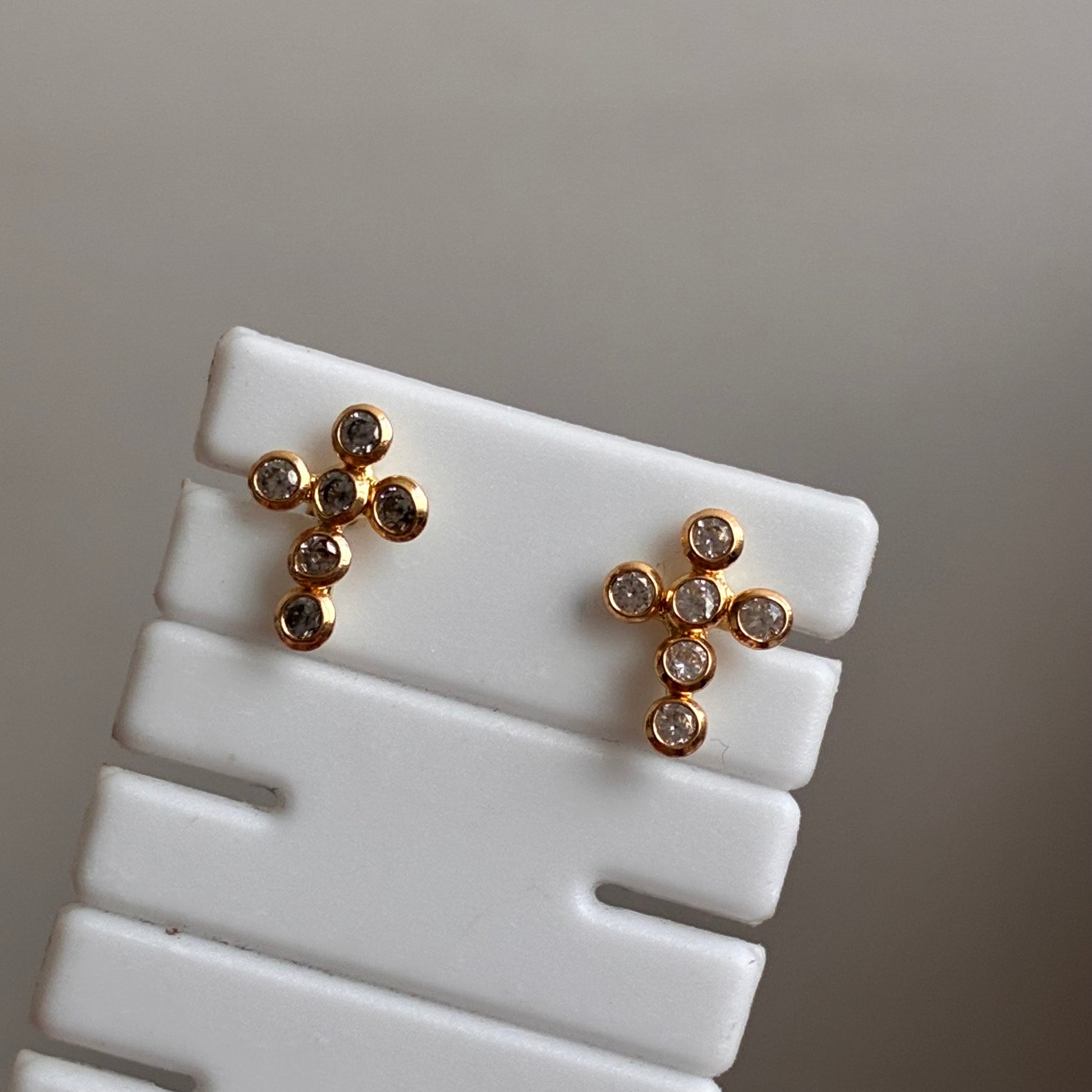 TOPOS CRUZ REDONDA PIEDRAS BLANCAS ORO AMARILLO 18K - 0,77GR