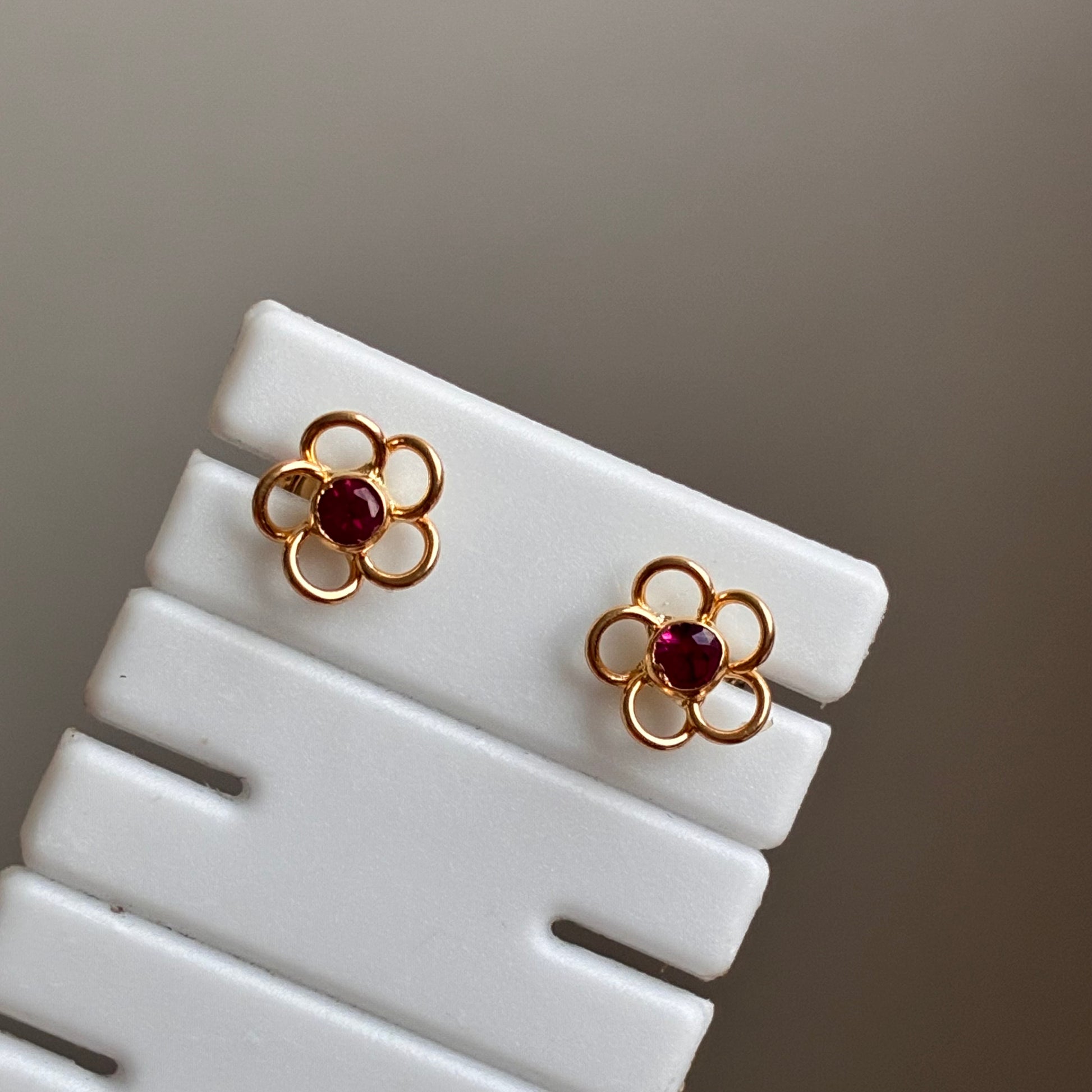TOPOS SILUETA FLOR PIEDRA FUCSIA 6MM ORO AMARILLO 18K - 0,76GR