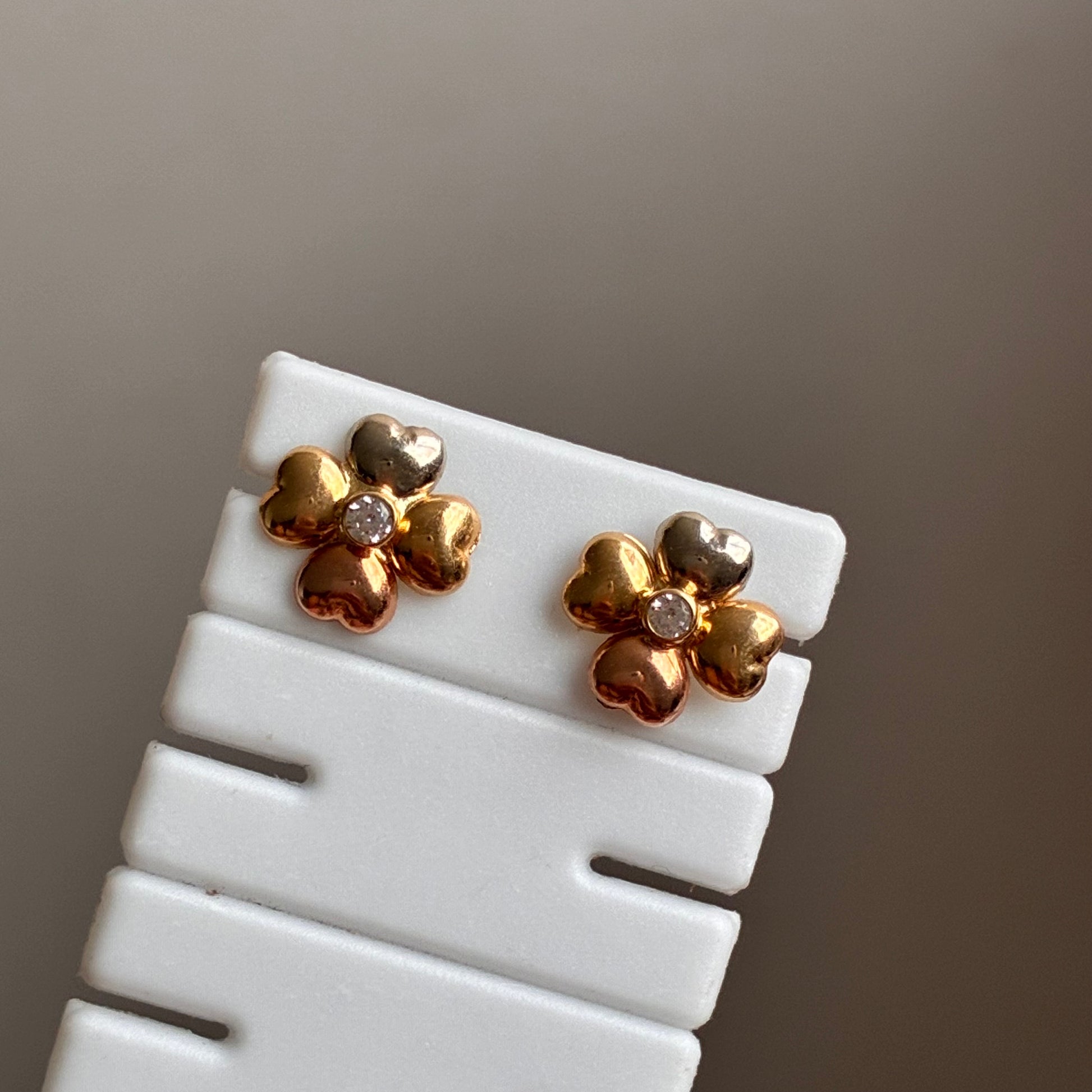 TOPOS TREBOL 4 HOJAS PIEDRA BLANCA TRES OROS 18K - 0,87GR