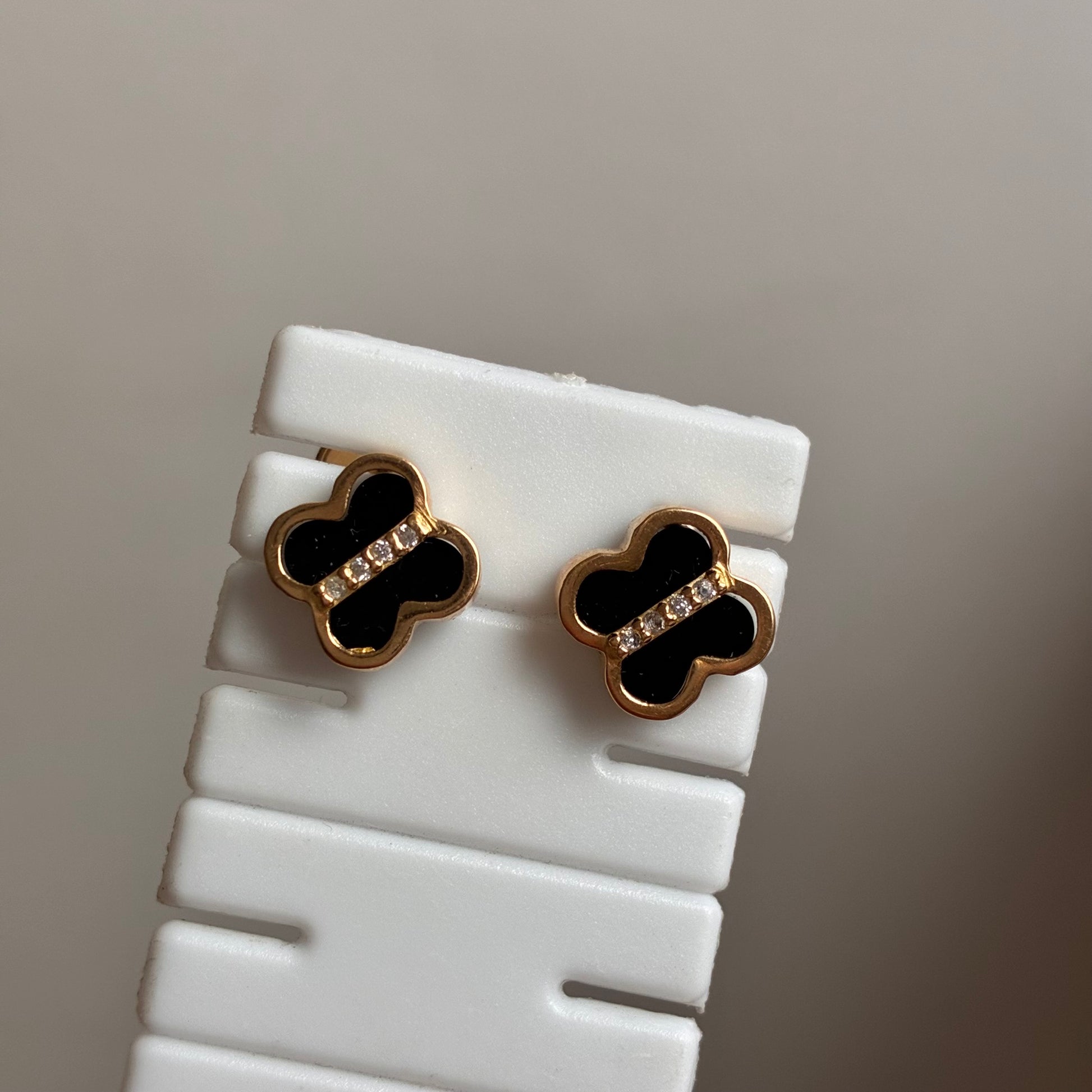 TOPOS TREBOL PIEDRA NEGRA Y PIEDRAS BLANCAS 0.9CM ORO AMARILLO 18K - 1,89GR